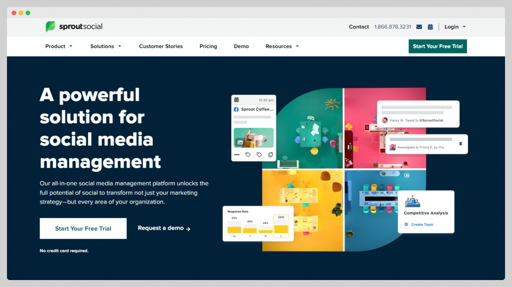 As a social media management dashboard, SproutSocial consolidates all of the channels you manage into one place.