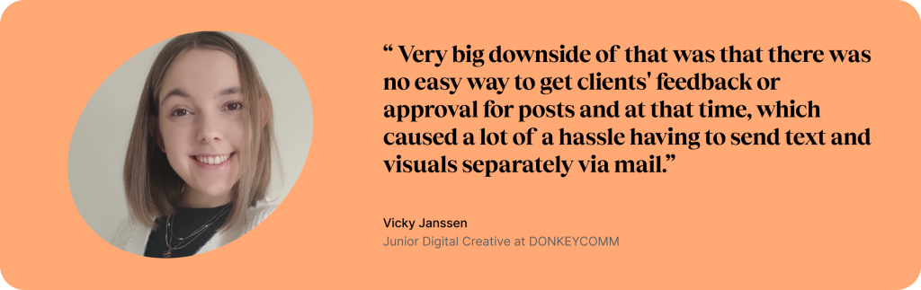 Firstly, it’s, of course, Internal and External Feedback. One of the biggest improvements was how easy it became to collect feedback from both internal teams and clients. They could send posts directly to clients for approval, getting quick, clear feedback without the need for additional emails or attachments.