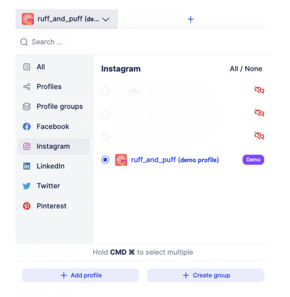 You can then select your Instagram profile from the drop-down list of all profiles you connected in Kontentino.