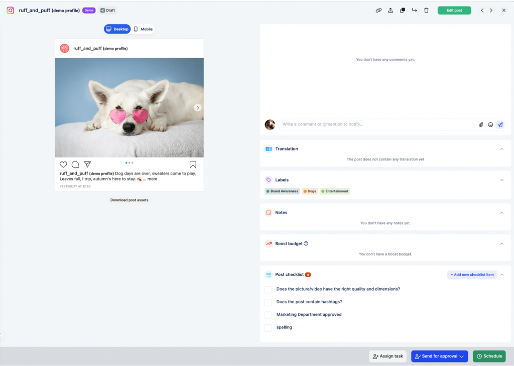 When you’re scheduling Instagram posts, another important step is to consider how your team will approve or reject your scheduled content.