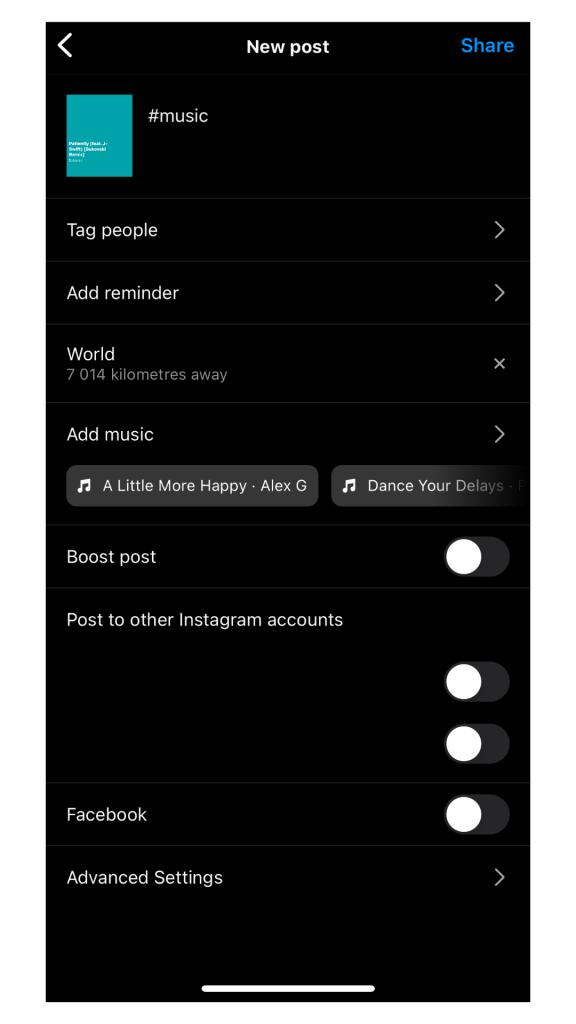 Now you’re creating your Instagram post. Here’s what you can do here: