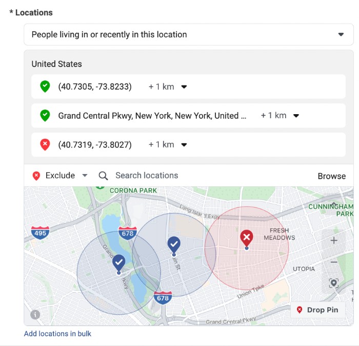 Mit dieser Methode kannst du dich auf spezifische geografische Gebiete konzentrieren, indem du Stecknadeln auf einer Karte setzt. Es ist ein kosteneffizienter Weg, Nutzer an einem genau definierten Standort zu erreichen.