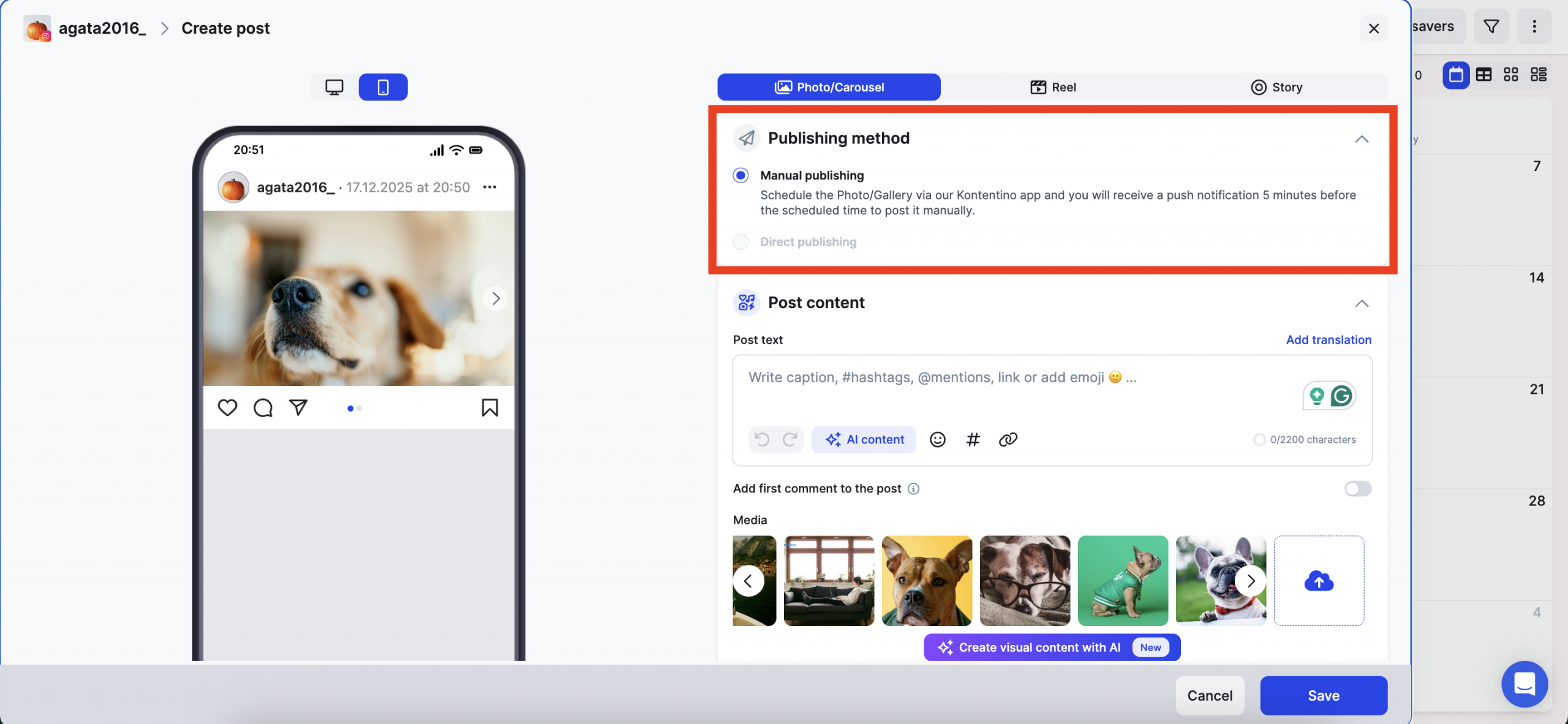 📸 Postita Instagrami kuni 20 faili – kasutades Kontentino mobiiliäppi