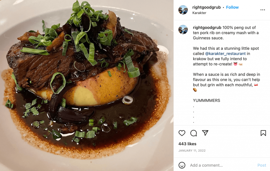 Ne feledd, a közösségi média kétirányú utca. Kérdezd meg a vendégeket, mi a kedvenc ételük, vagy mit látnának szívesen az étlapon. Az algoritmusok jutalmazzák az engagement-et, így fókuszálj erre a jelenléted során.