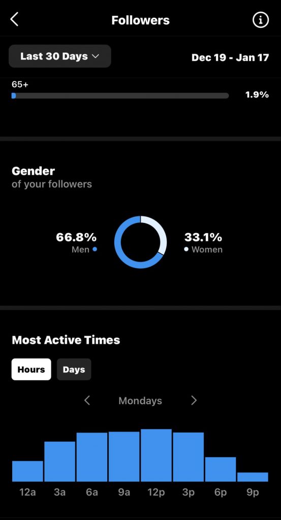 Tāpat vari izmantot Insights, lai redzētu, kuros laikos un dienās tava auditorija ir visaktīvākā. Izmantojot šos datus, vari pielāgot savu grafiku, lai saturs parādītos taviem iesaistītākajiem sekotājiem īstajā brīdī.