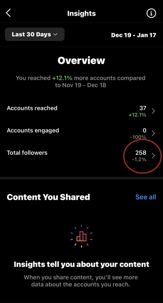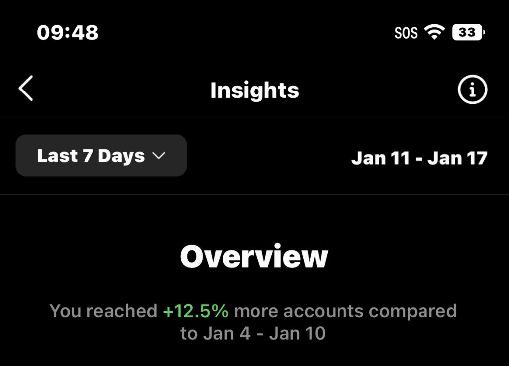 Lai izsekotu eksperimenta rezultātiem, mēs uzraudzīsim tava Instagram konta aktivitāti sadaļā Overview.