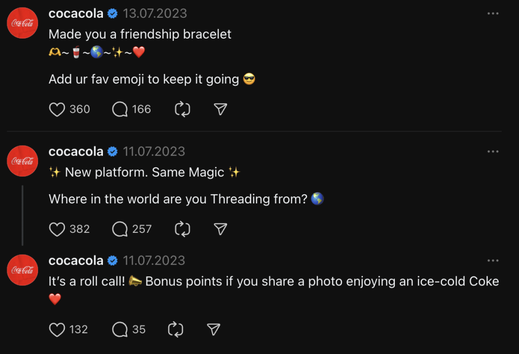 Okrem otázok Coca Cola povzbudzuje sledovateľov k zapájaniu sa do „reťazových komentárov“.