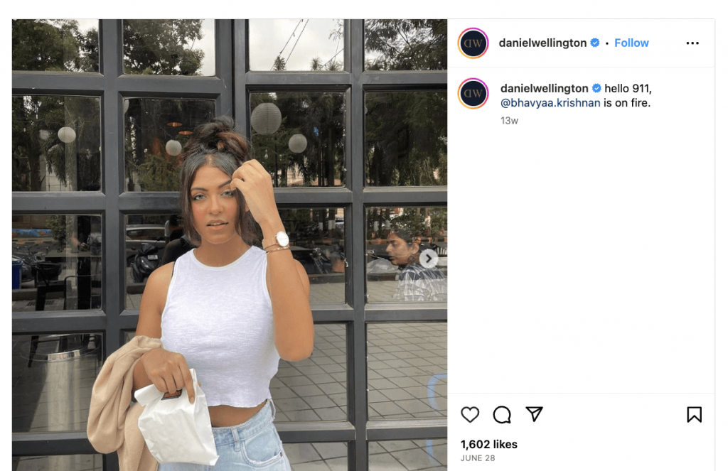 Môžete napríklad zorganizovať fotosúťaž, kde fanúšikovia zdieľajú, ako používajú váš produkt. Alebo môžete nasledovať taktiku značky Daniel Wellington a prezdieľať fotky od svojich followerov: